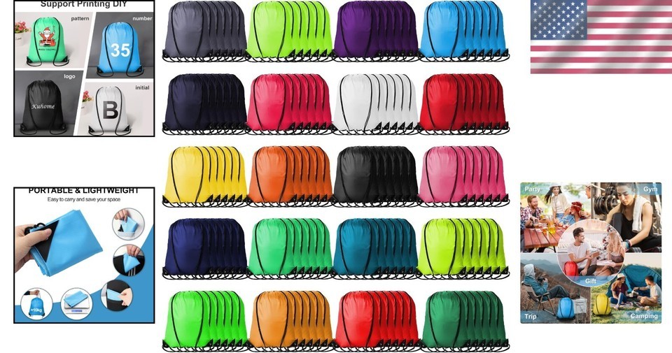 Folding Lightweight: These bulk drawstring backpacks are foldable and extremely lightweight. Simply pull the strings to transform them into a secure backpack, keeping your items safe and organized.