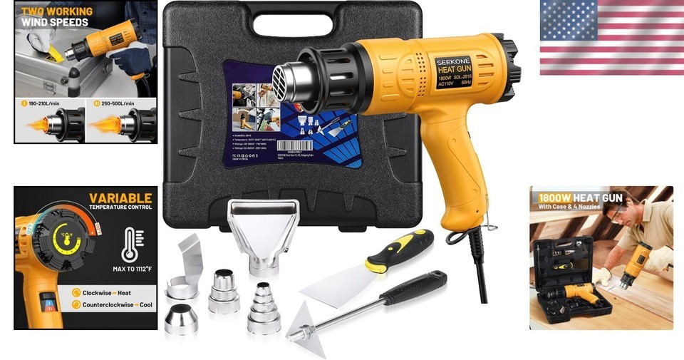 Variety of Nozzles Accessories: Comes with 7 accessories, including 5 different heat gun nozzles for focusing heat and airflow. Perfect for shrink wrapping, epoxy resin, crafts, electronics repairs, and more.