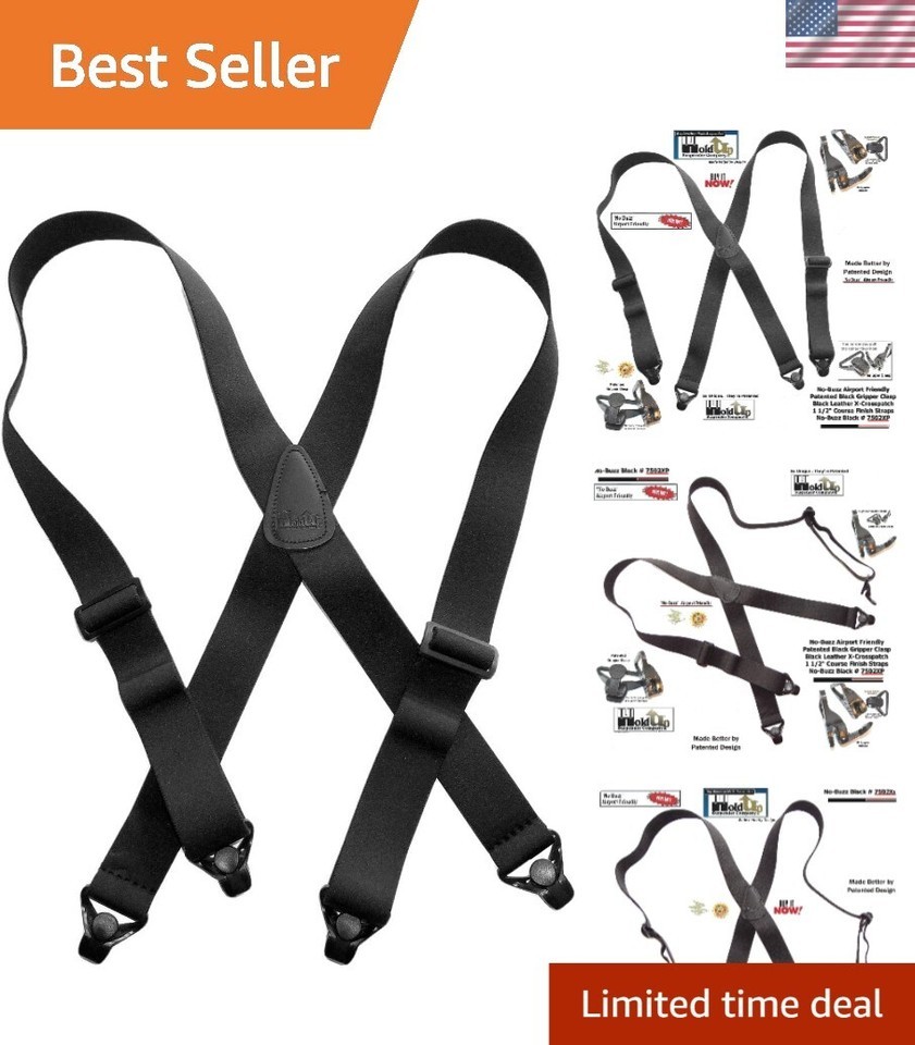Men's Black Airport Friendly Suspenders - 54-Inch XL with Leather Crosspatch