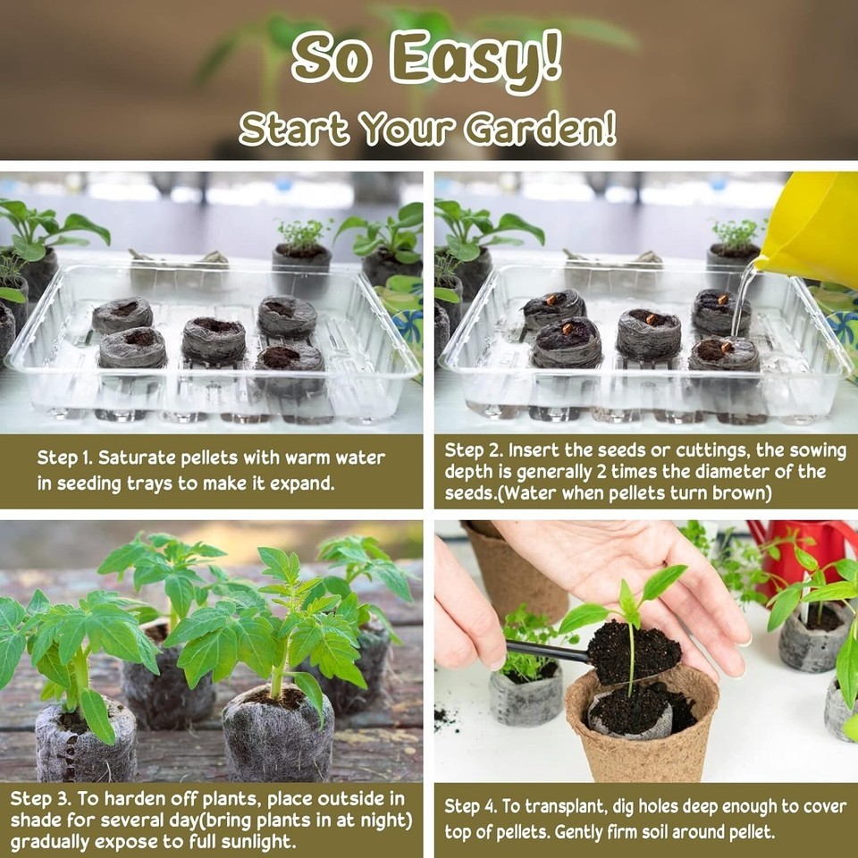Transform your gardening experience with our Peat Seed Starting Pellets. Crafted from superior peat, these pellets are designed for optimal germination and growth, providing a nurturing environment for your plant's roots. Easy to use and eco-friendly, your seedlings will thrive with minimal effort, letting you enjoy the fruits (and vegetables!) of your labor sooner! Don't miss this chance to elevate your gardening journey?order your set of Peat Seed Starting Pellets today!
