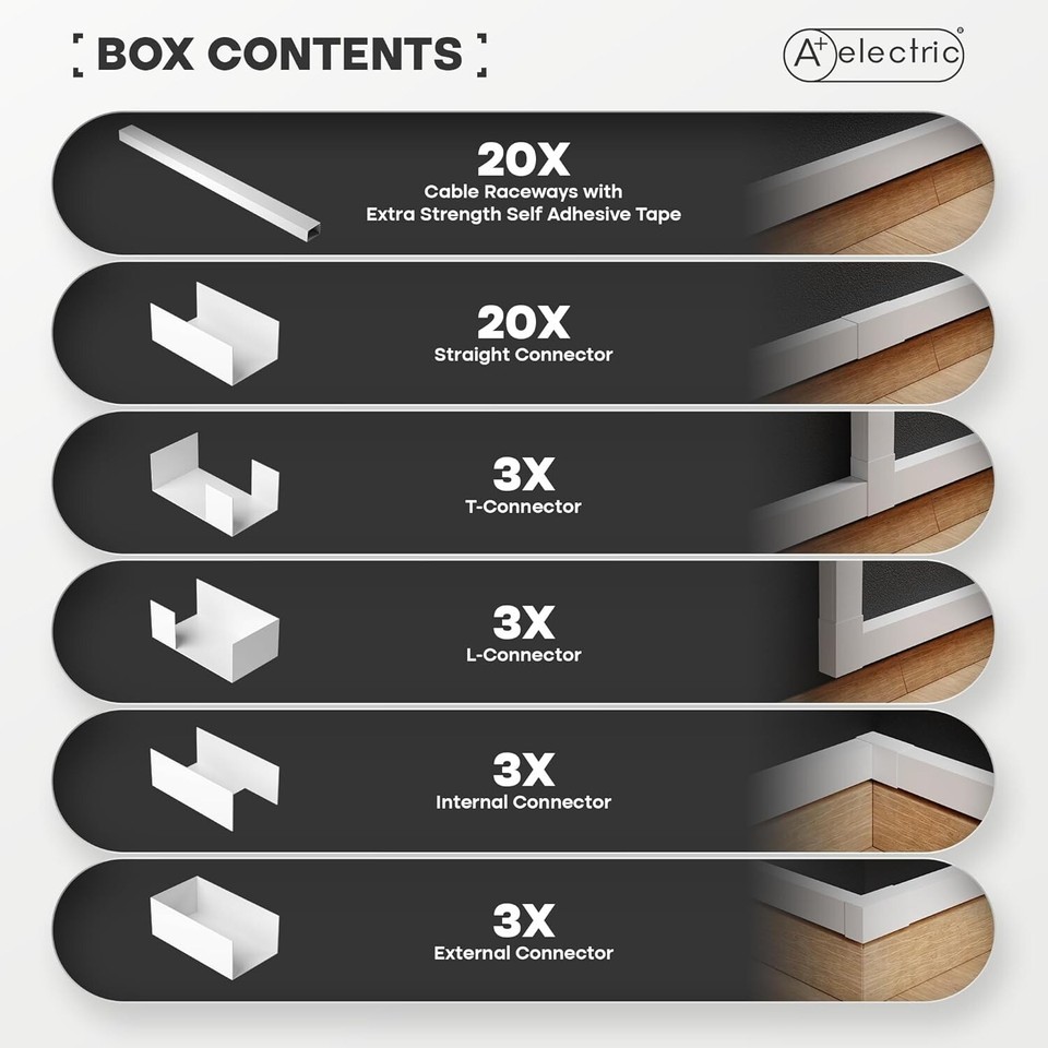 Transform your living or working space with our Premium Cord Cover System. Say goodbye to tangled wires and hello to a safe, organized environment that exudes elegance and sophistication. With 315 inches of cable concealer and an array of versatile fittings, you can efficiently hide all your cords and cables, ensuring peace of mind for you and your loved ones.