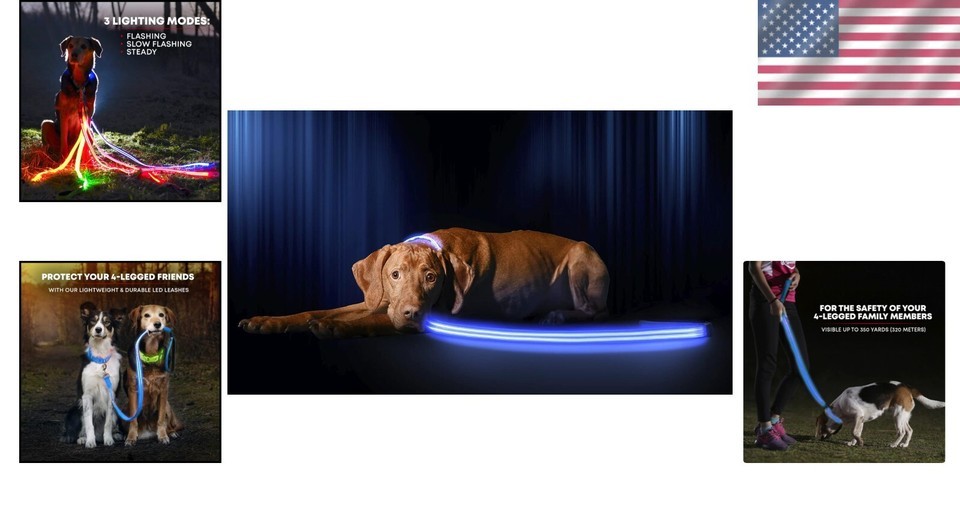 360-Degree Visibility: Enjoy unparalleled visibility for your four-legged family member with our LED light-up leash. See up to 350 yards in all weather conditions and low-light situations, ensuring vehicles and passersby can spot you well in advance.