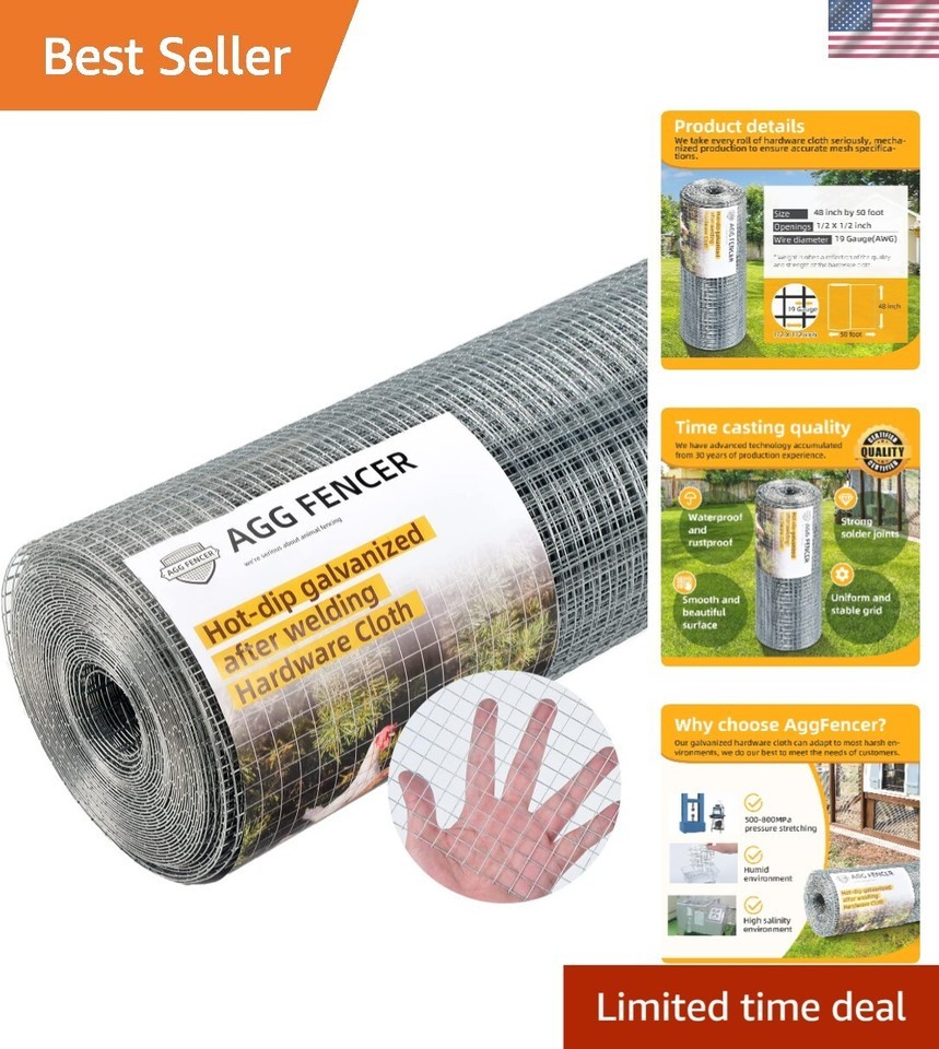 Hot Dipped Galvanized 48in x 50ft Hardware Cloth - Versatile Animal Netting