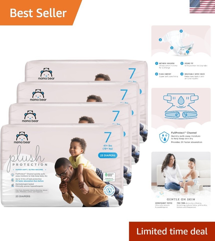 Size 7 Hypoallergenic Plush Protection Diapers - 4 Packs for Ultimate Comfort