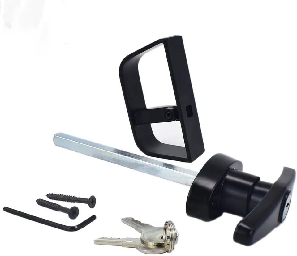 Complete Kit: The kit includes an outside locking T-Handle, a D-Handle for inside, multiple keys, screws, and a convenient hex key for easy installation.