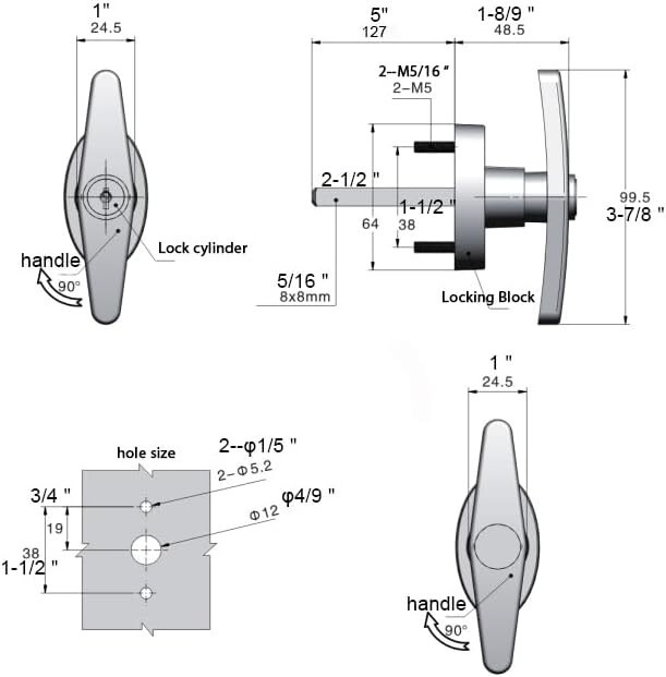 Durable Construction: Crafted with a 5oe" zinc-plated spindle, this heavy-duty T-Handle lock ensures long-lasting performance.