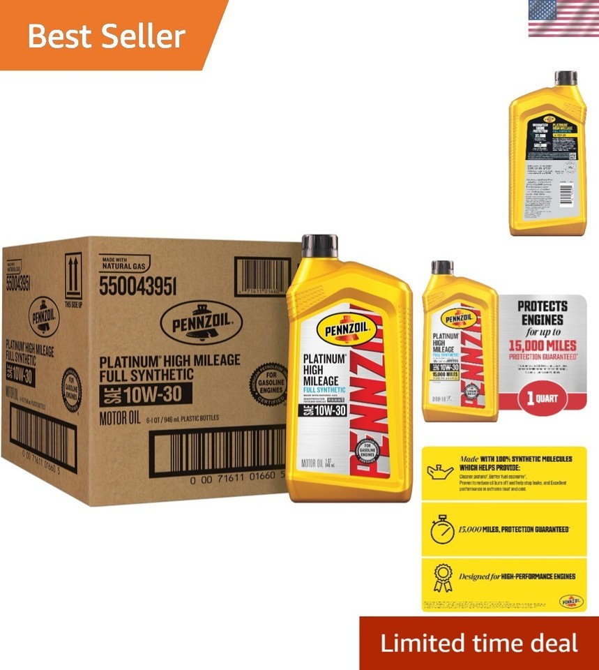 Pennzoil Platinum High Mileage 10W-30 Full Synthetic Oil, 1 Quart - 6 Pack