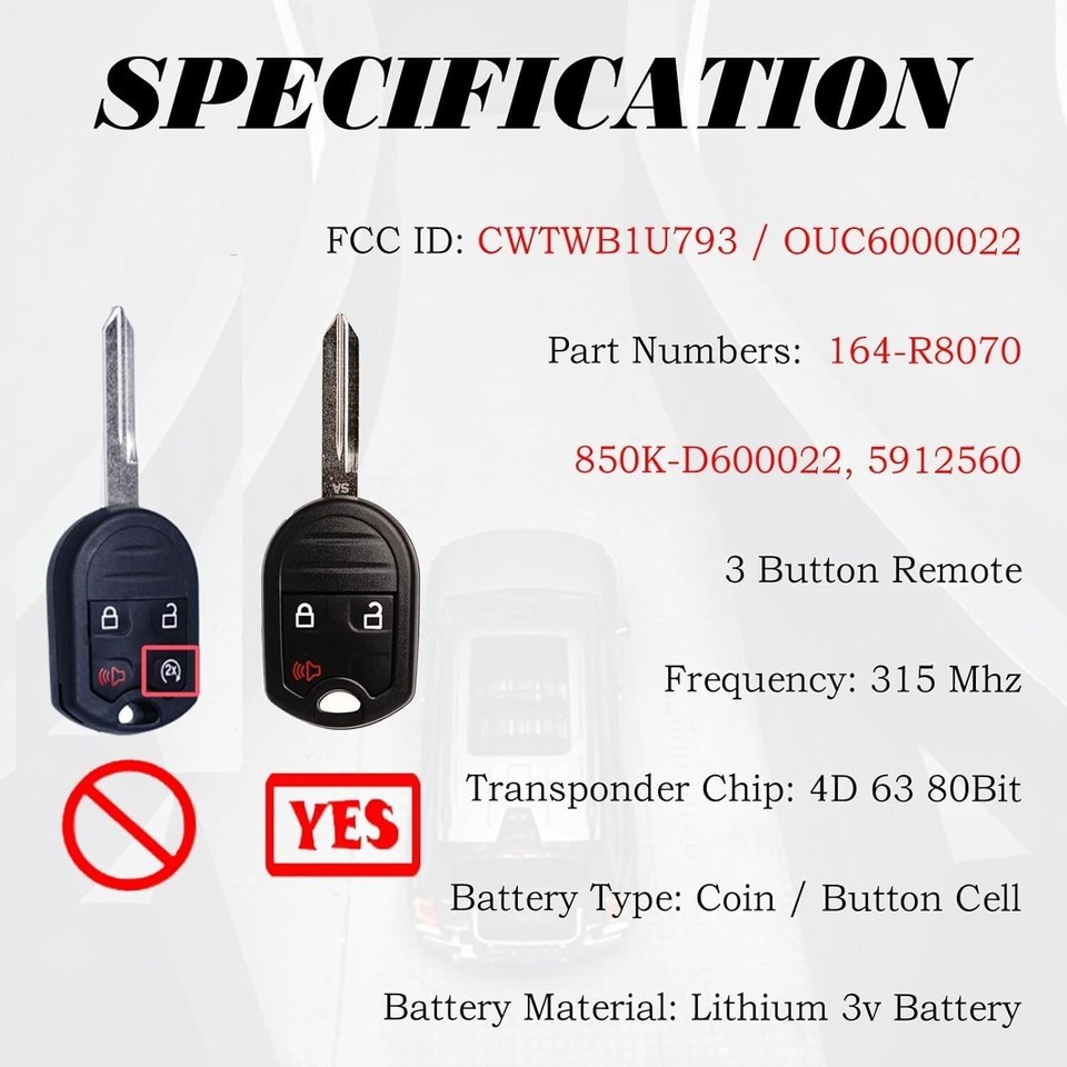 Don?t settle for less! Order your set of key fob replacements today and regain control and confidence with your vehicle's access!