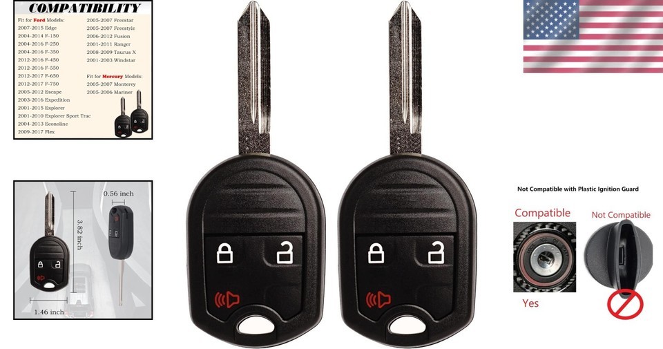 Durable Ford Mercury Key Fob Replacement - Self-Programming & Batteries Included
