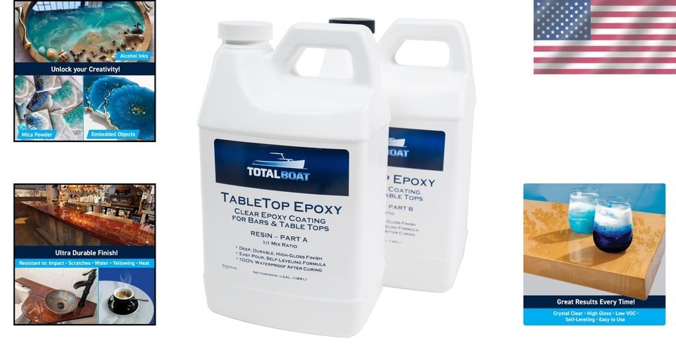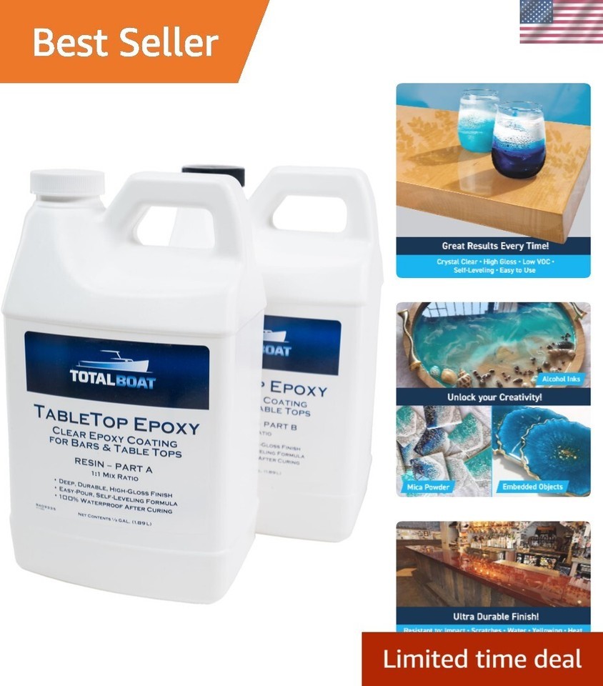 High Gloss Self-Leveling Epoxy Resin Kit - Ideal for Wood, Bar Tops More