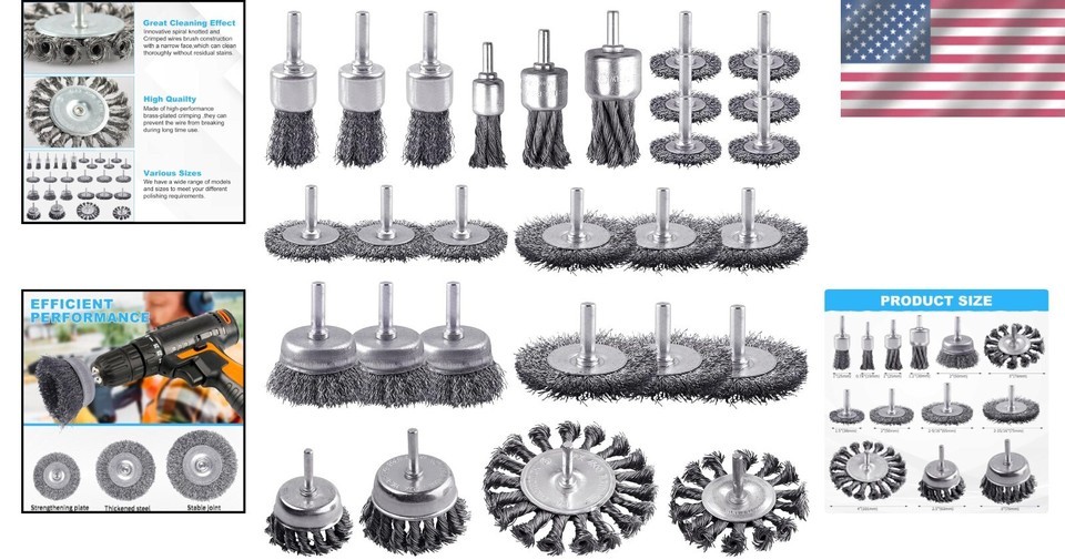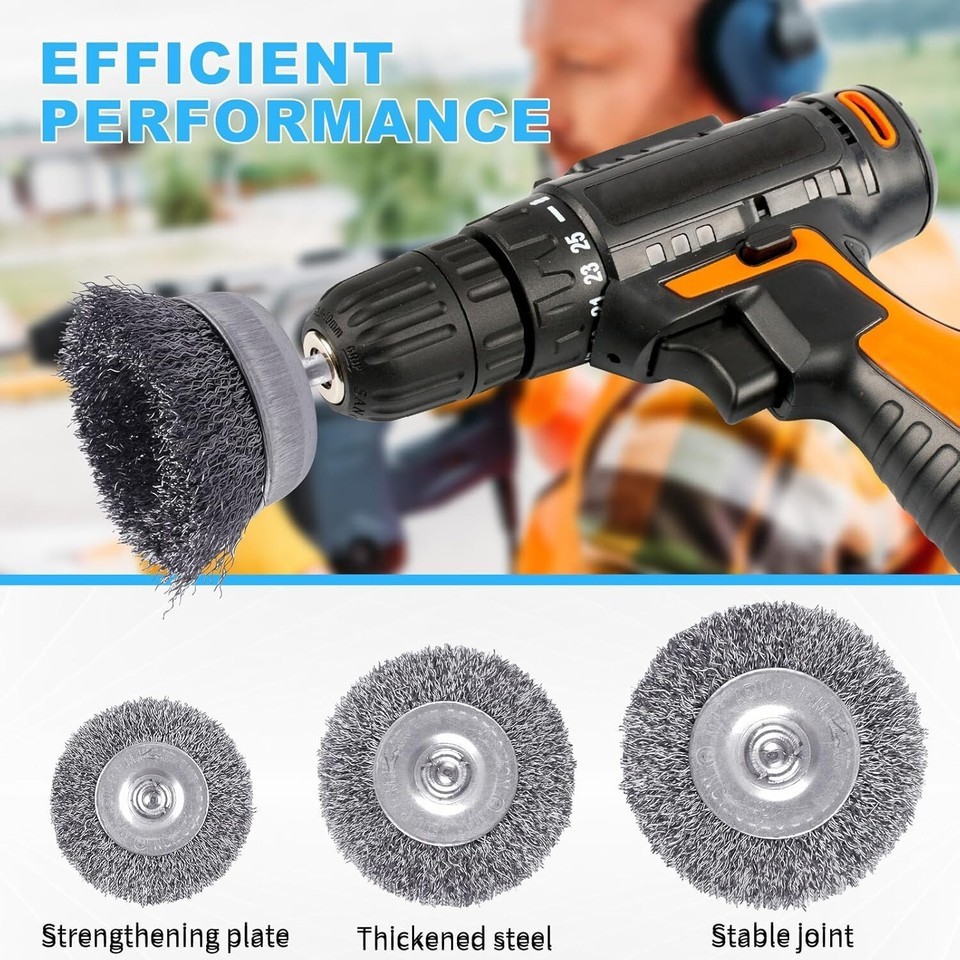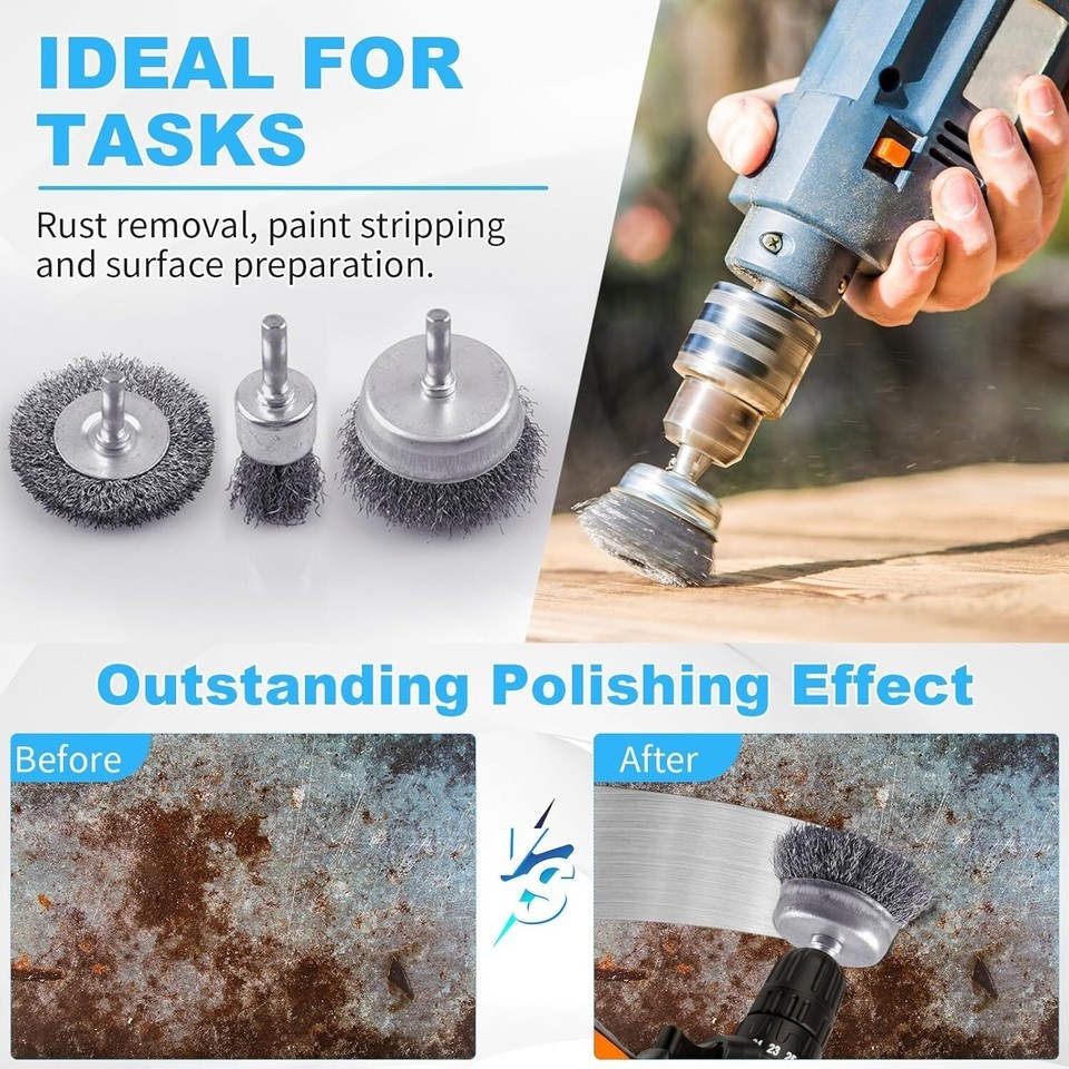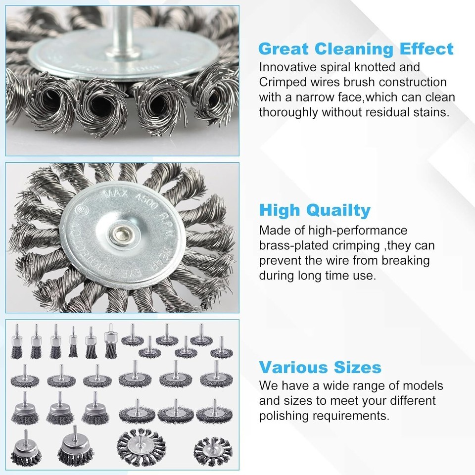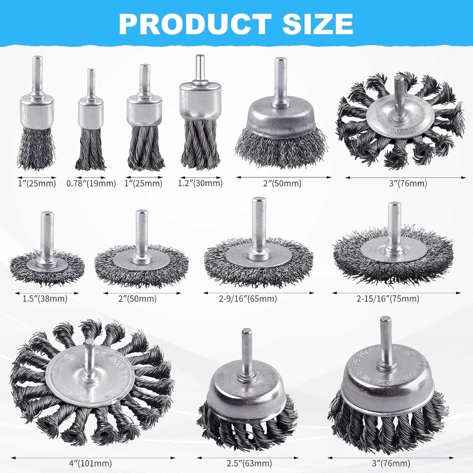 - Includes 3 pcs carbon steel cup brush, 15 pcs wheel brush, 3 pcs pen brush with 1/4 inch shank, and 7 pcs twist knot brush.