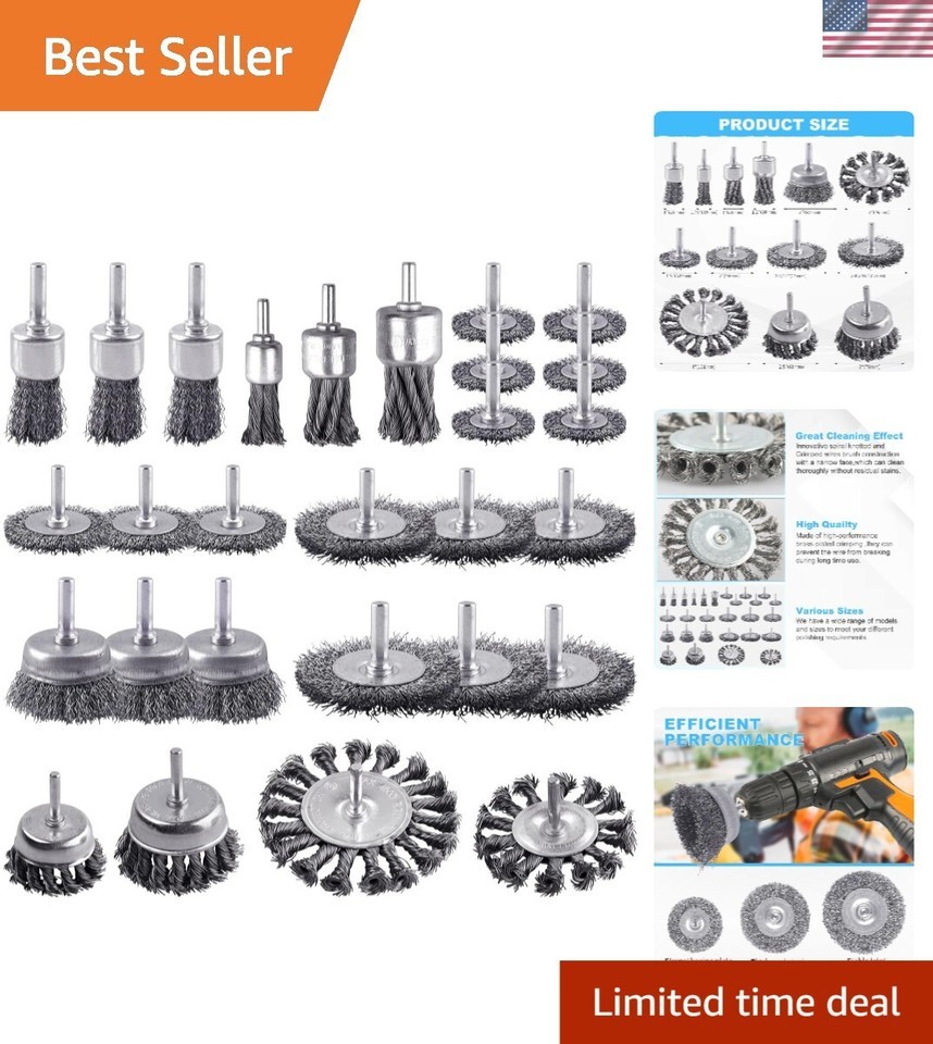 28 Pack Carbon Steel Wire Brush Set with 1/4-Inch Shank - Rust Removal Tools
