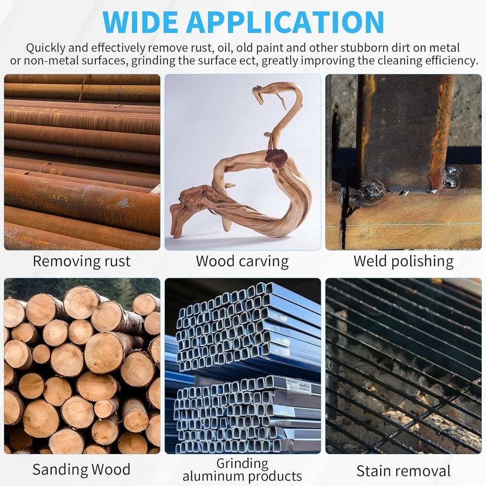 Simplifies rust removal, corrosion cleaning, paint stripping, and scrubbing surfaces.