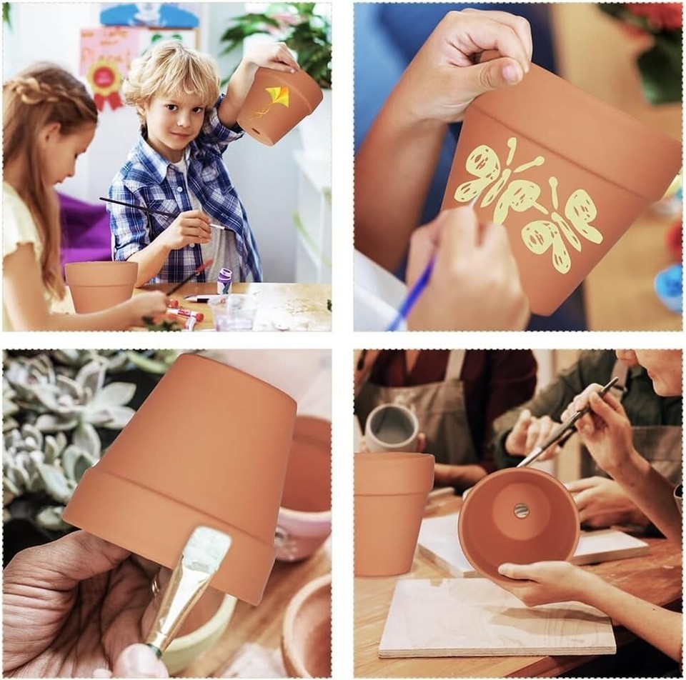 Elevate your planting experience with our meticulously crafted 4-inch terracotta flower pots. Whether you're seeking to embellish your living space, perfect your wedding decor, or gift a loved one with a personal touch, these pots are the epitome of elegance and practicality. The high-quality clay ensures longevity while the drainage holes provide optimal growth conditions for your beloved plants.