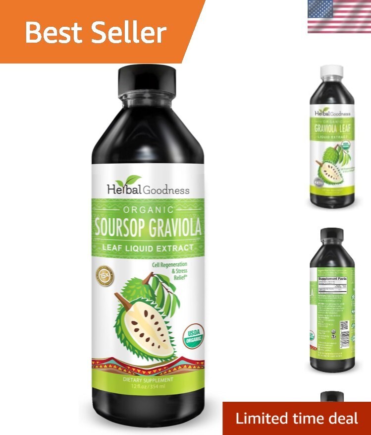 Natural 12oz Soursop Graviola Leaf Extract - Stress Relief & Immune Boost Drops