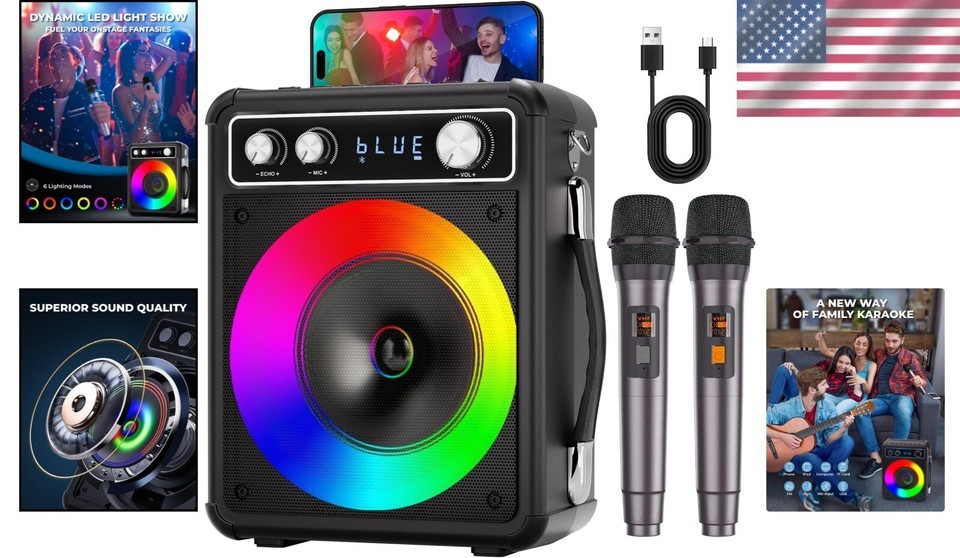 HD Stereo Portable Karaoke System with LED Light Effects ? Perfect for Parties