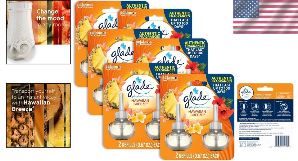 Essential Oil PlugIns Refills - Hawaiian Breeze, Long-Lasting Freshness, 6 Count