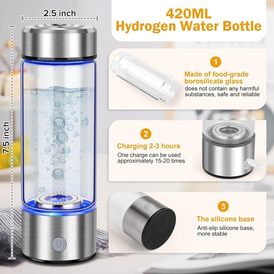Elevate your hydration game with our Borosilicate Glass 420ml Hydrogen Water Bottle. Experience the ultimate fusion of luxury and wellness ? order yours today!