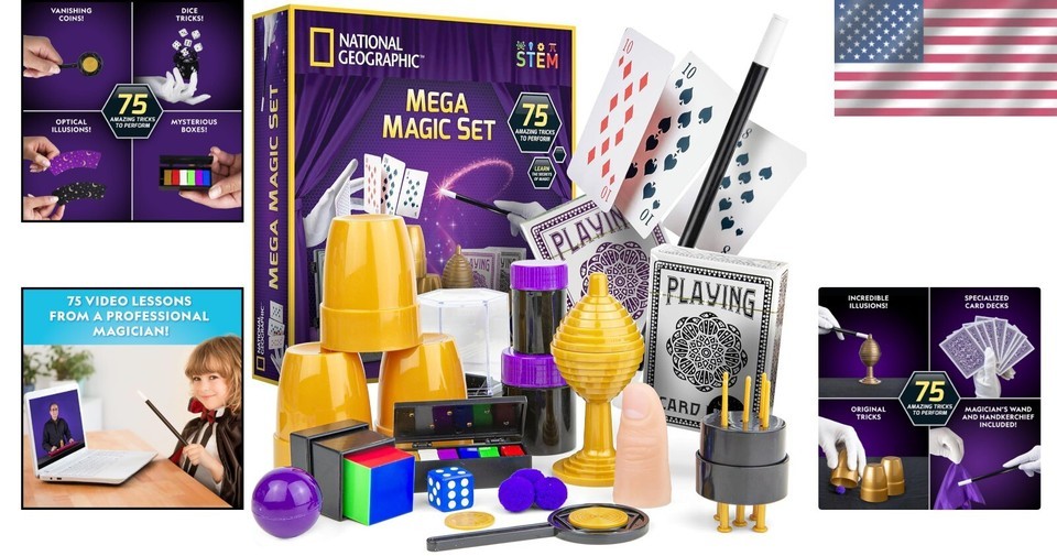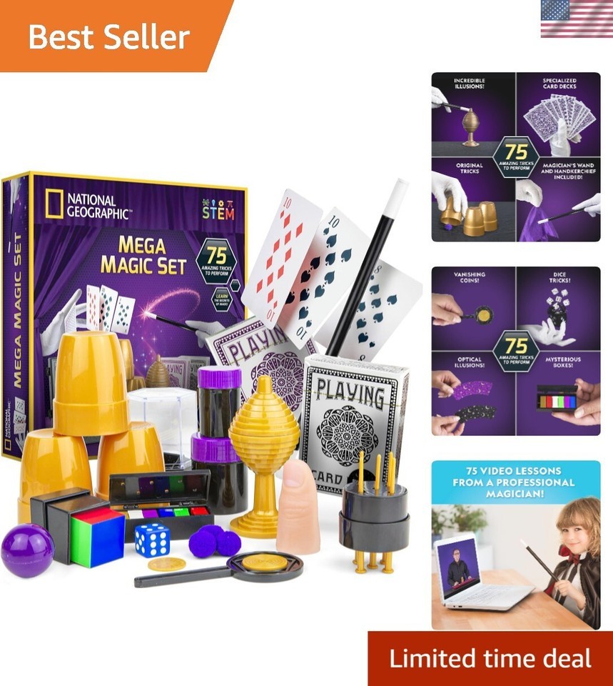 Unleash your child?s imagination and creativity with the NATIONAL GEOGRAPHIC Mega Magic Kit, a captivating collection of 75+ tricks that will turn any child into a young magician!