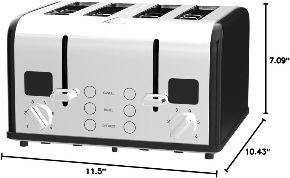 5.5 inches long slots and 1.5 inches extra wide slots, perfect for various kinds of bread including thick-cut breads like croissant, toast, English muffins, and bagels.