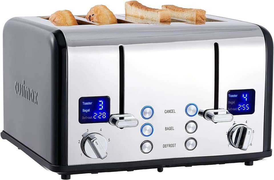 Features: Cancel Button,Defrost,Removable Crumb Tray,Bagel,Extra Wide Slots,LED Display,Dual Control Panels,Removable Crumb Trays,Extra-High Lift,Compact Design,Lightweight,5.5-inch Long Slots,1.5-inch Extra Wide Slots,6 Browning Settings,Super-Clear LED Display,Bagel Function,Cancel Function,Defrost Function,Blue Light Indicator,Classic Style