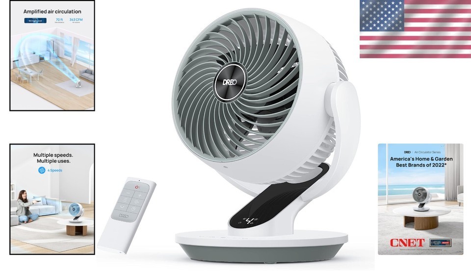 Whisper-Quiet 13-Inch Oscillating Fan with Remote Control for Whole Room Cooling
