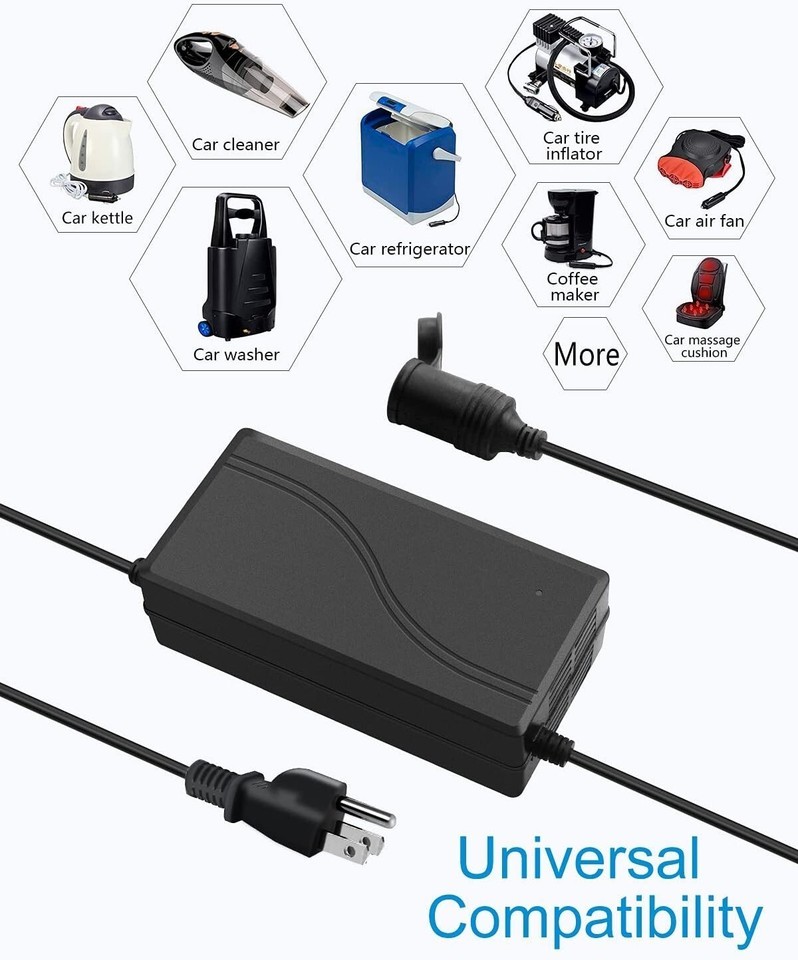 Compatible with car devices that draw less than 20.8A, ideal for various applications such as air compressors, coffee makers, and more.