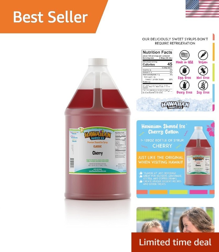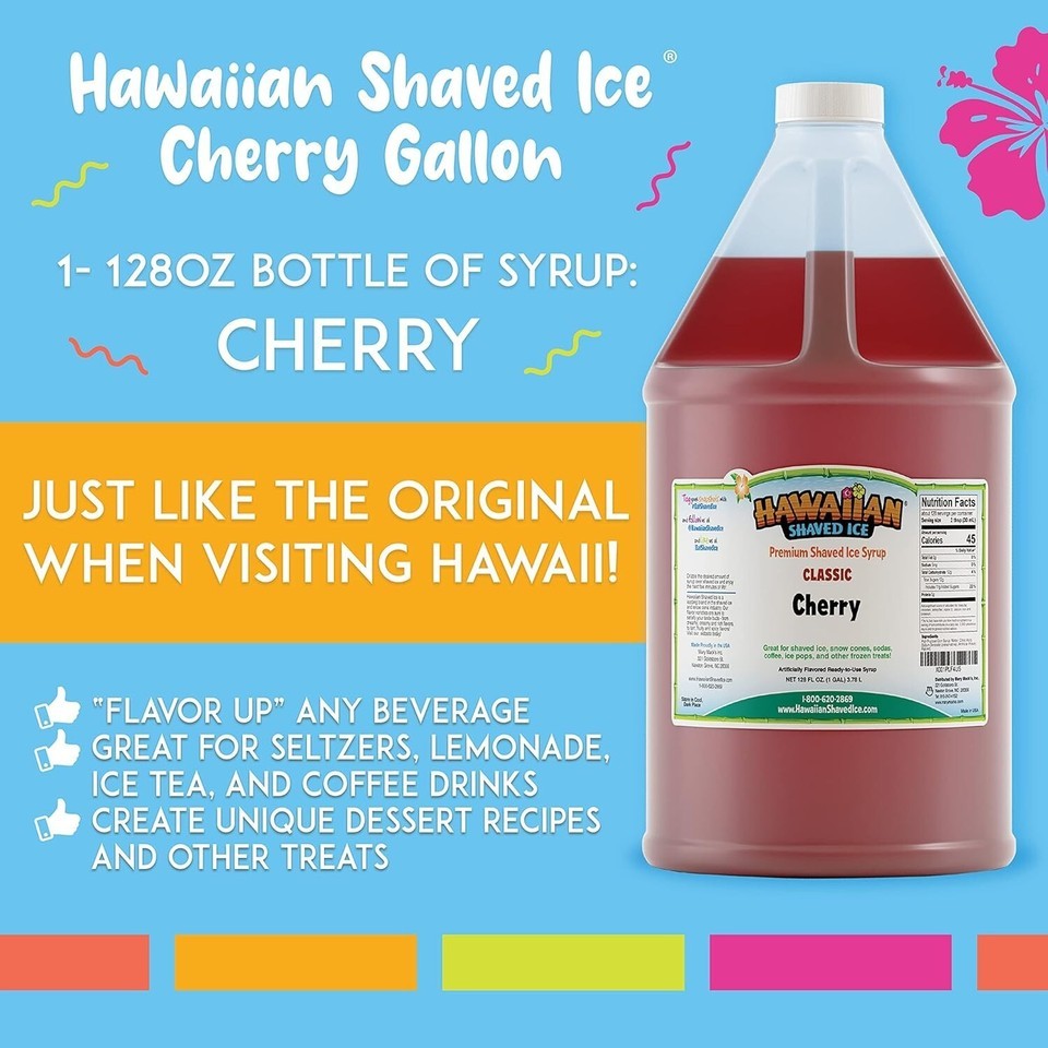 Versatile Gallon Cherry Syrup, perfect for shaved ice, beverages,