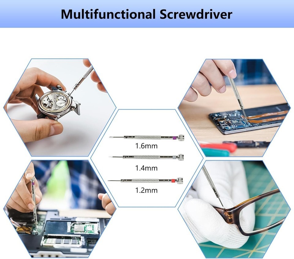 Perfect for Your Needs: This watch tool kit is designed for various repairs and adjustments: open watch back covers, replace straps, adjust band sizes, change batteries, and clean or restore your valuable timepieces.