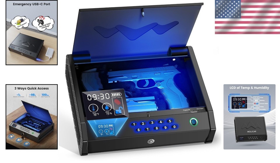 Features: Biometric Lock,LCD Display,USB-C Port,Mute Mode,Temperature Monitoring,Humidity Monitoring,Battery Life Indicator,Unlock Status Display,Time Display,Emergency Power Input,LED Lights