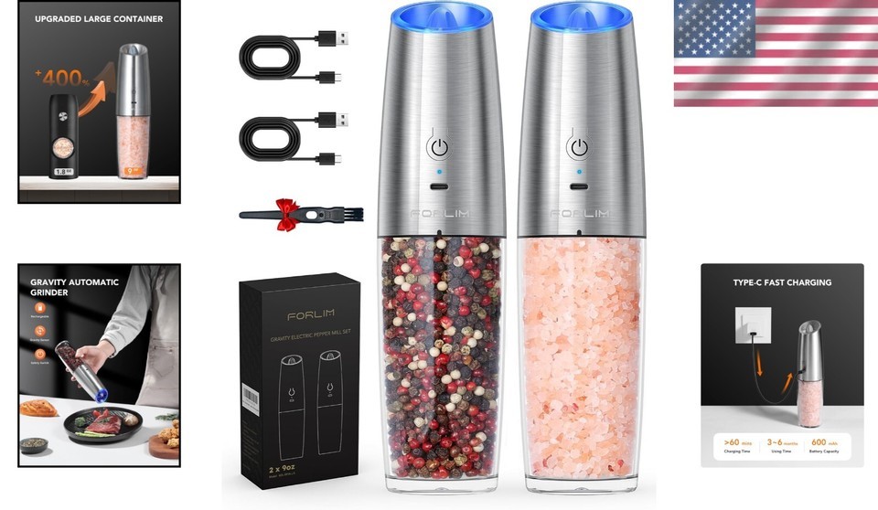 USB Fast Charging - Eliminate the need for constant battery replacements with our Electric Salt and Pepper Mill. Enjoy consistent performance with quick charging using the included USB-C cable.
