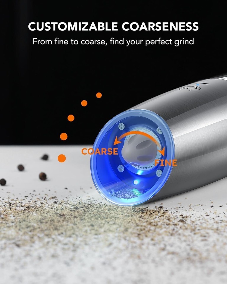 Exquisite Designs - Crafted from premium stainless steel, this grinder set adds sophistication to any kitchen while the built-in blue LED light enhances your dining experience.