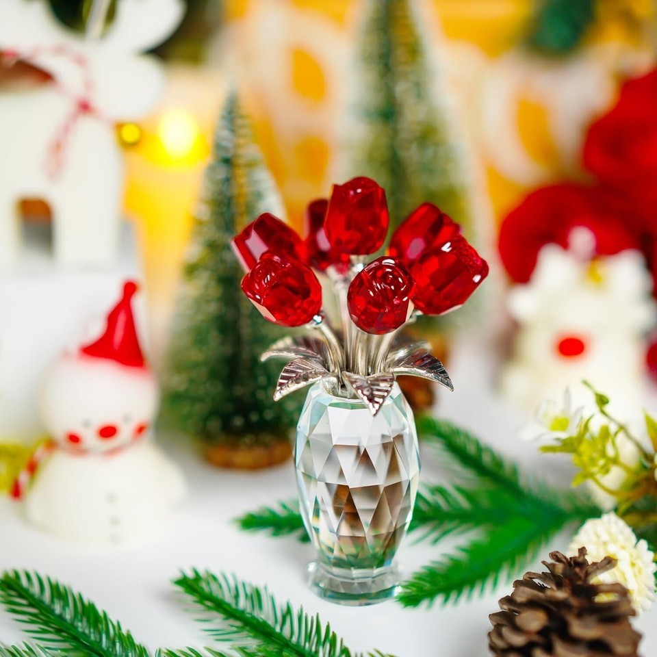High-Quality Materials: Made from premium K9 crystal and metal, the flower buds and vase are crafted from crystal, while the stem is made of metal, creating a harmonious blend of strength and beauty.
