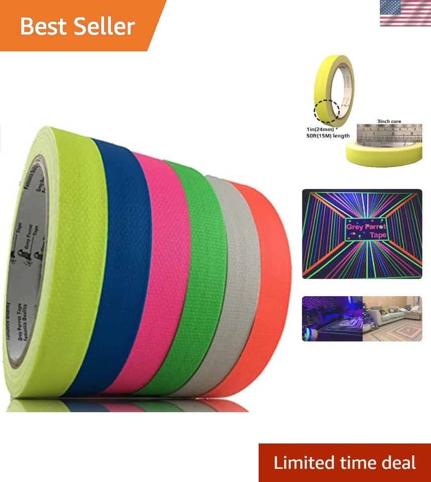 Fluorescent Glow Party Tape - 6 Colors, 50ft Rolls, Tear by Hand - Fun Décor