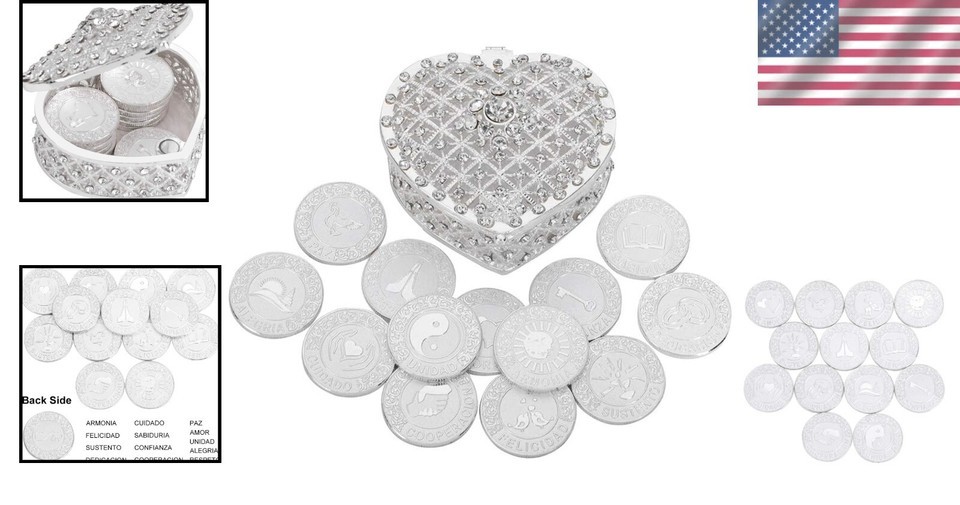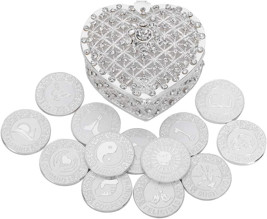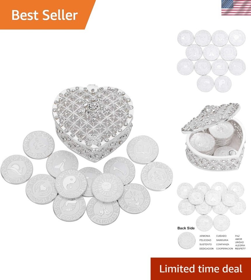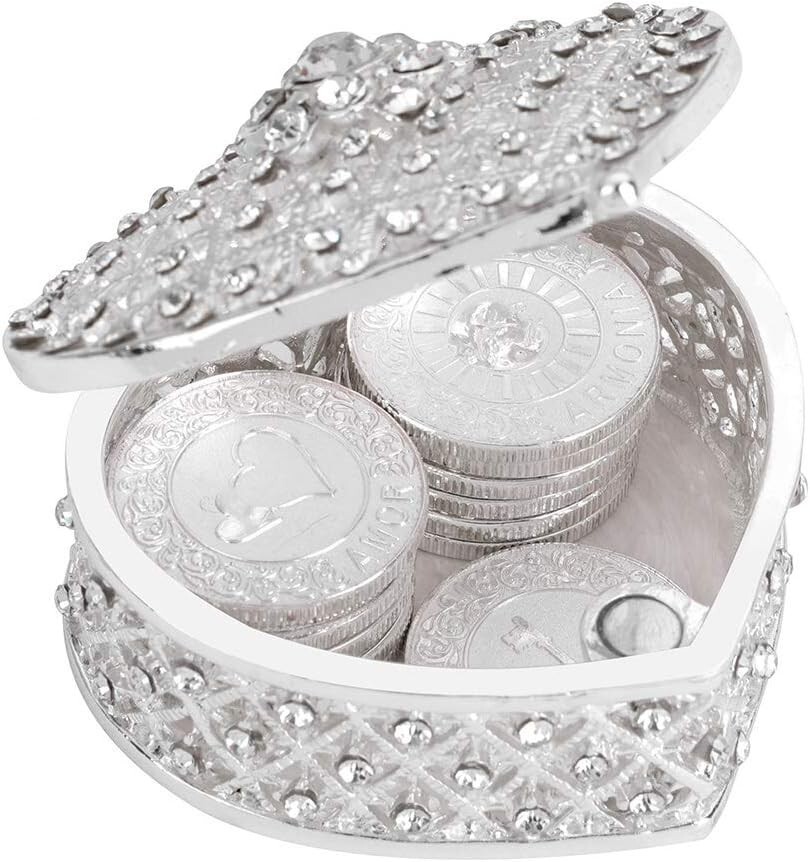 Portable Silver Arras Coins with Stunning Heart Box - Wedding Ceremony Essential