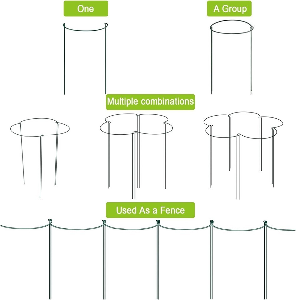 Elevate the growth and health of your plants with our Reusable Heavy-Duty Plant Cages. Designed with a smart half round shape, these plant supports are versatile and easy to use. The sturdy iron wire construction with powder coating ensures long-lasting durability, even in harsh weather conditions. With a natural green appearance that blends seamlessly with plant foliage, these cages provide essential support for a variety of plants, from flowers to vegetables.