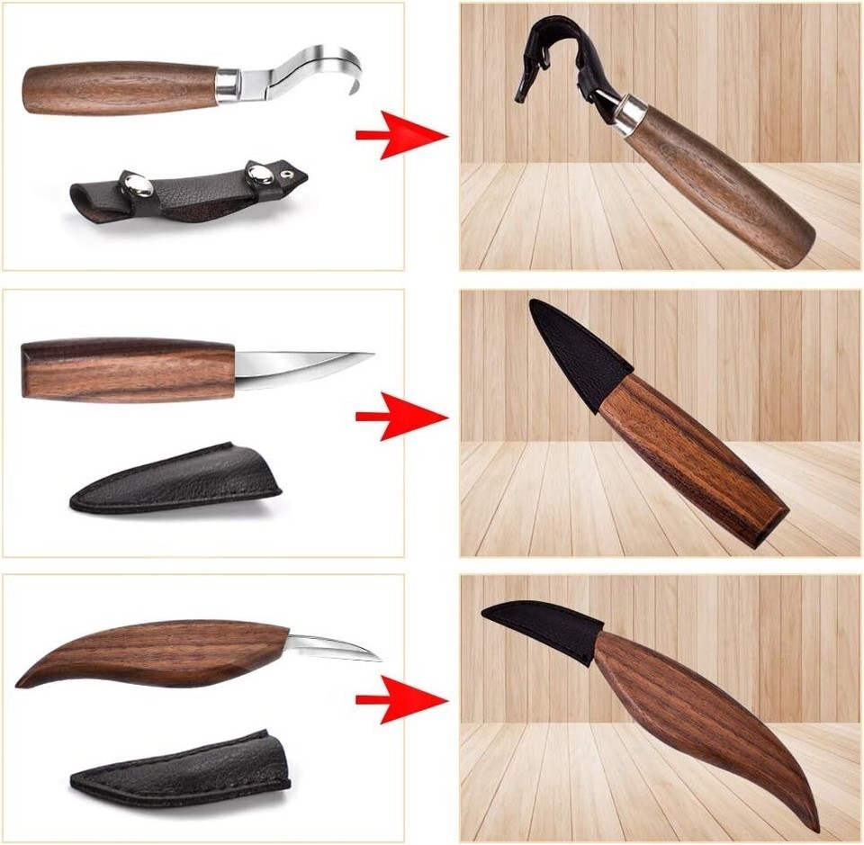 High-Quality 12-Piece Whittling Kit - Includes Gloves & Custom Leather Sheaths