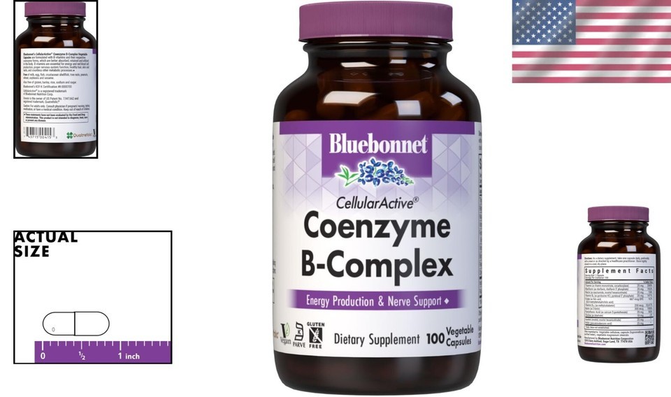 Vegan Cellular B-Complex - 100 Kosher Capsules for Energy Nervous System Care