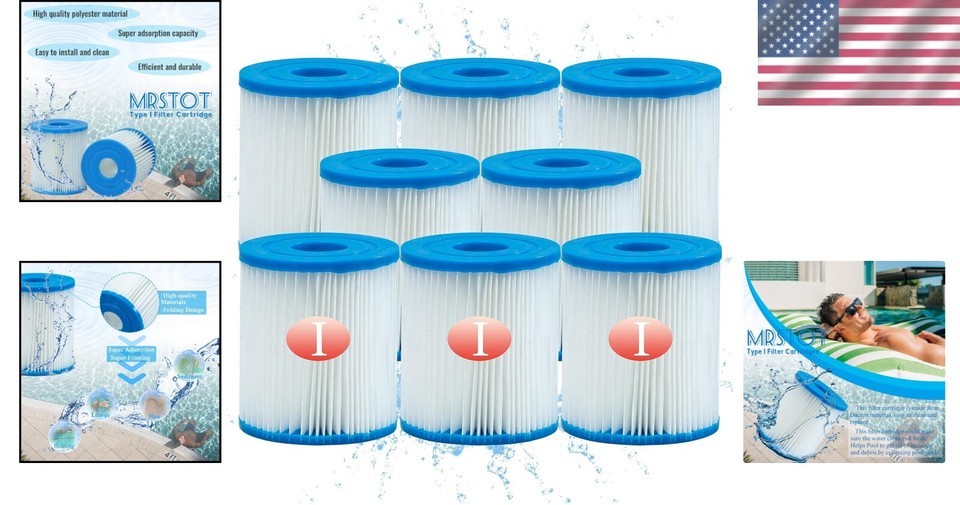 8 Pcs Type I Replacement Pool Filter Cartridge for Efficient Water Filtration