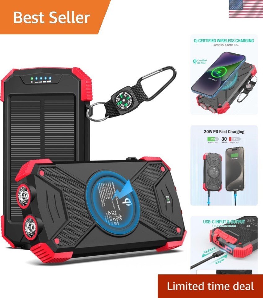 Outdoor Travel Ready 10,000mAh Solar Charger with Dual Flashlight & Quick Charge