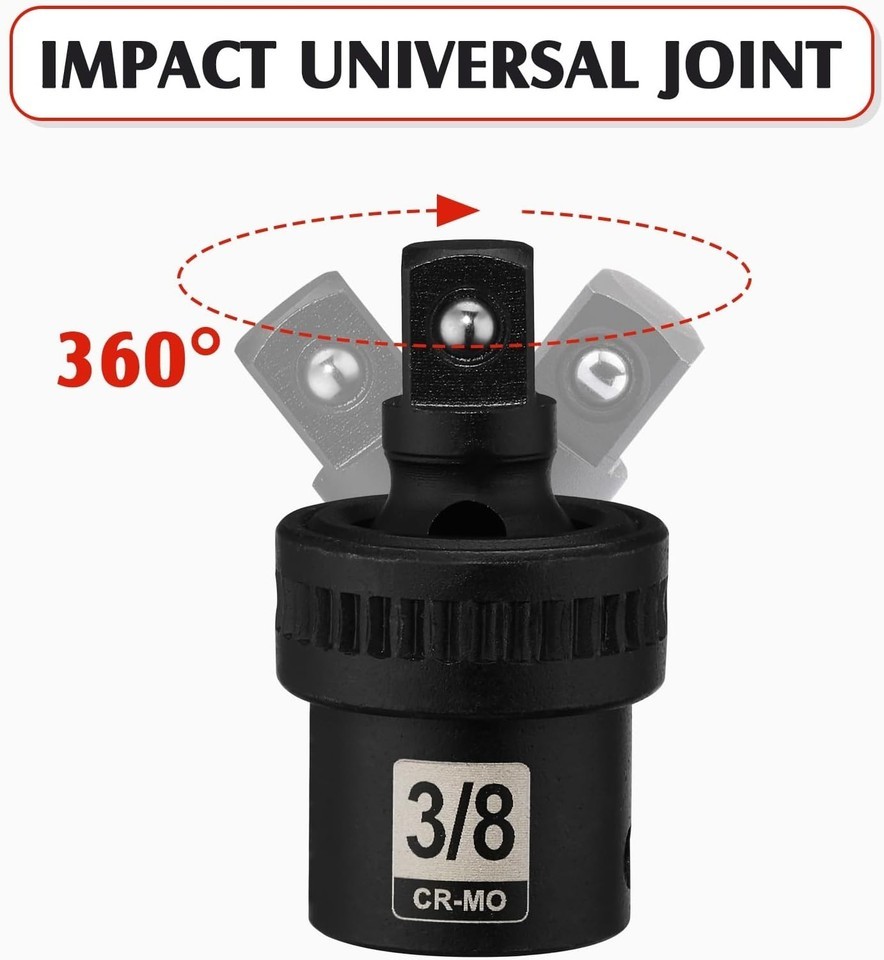 This Ultimate 49 Piece 3/8'' Drive Impact Socket Set is the quintessential toolkit for both professionals and DIY enthusiasts. Built from high-quality CR-V steel, each piece is designed to withstand the rigors of heavy-duty applications while providing precision and reliability. The thoughtfully included components, such as the impact extension bars and versatile socket sizes, ensure that you are well-equipped for any task.