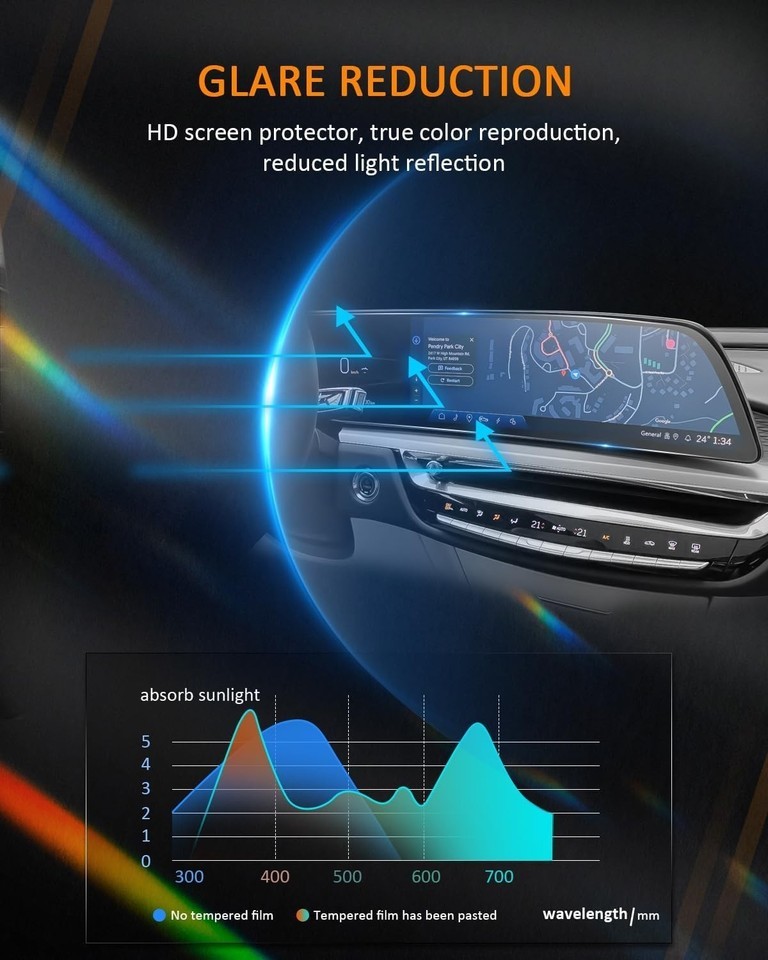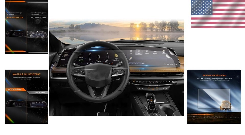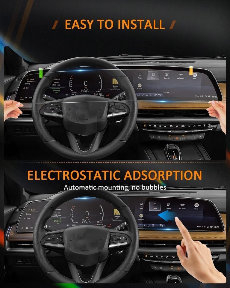 Exact Fit: Tailored specifically for Cadillac Lyriq (2023-2025), CT5 (2025), OPTIQ (2025), and XT4 (2024) models, perfectly designed to fit the 33-inch GPS navigation touch screen.