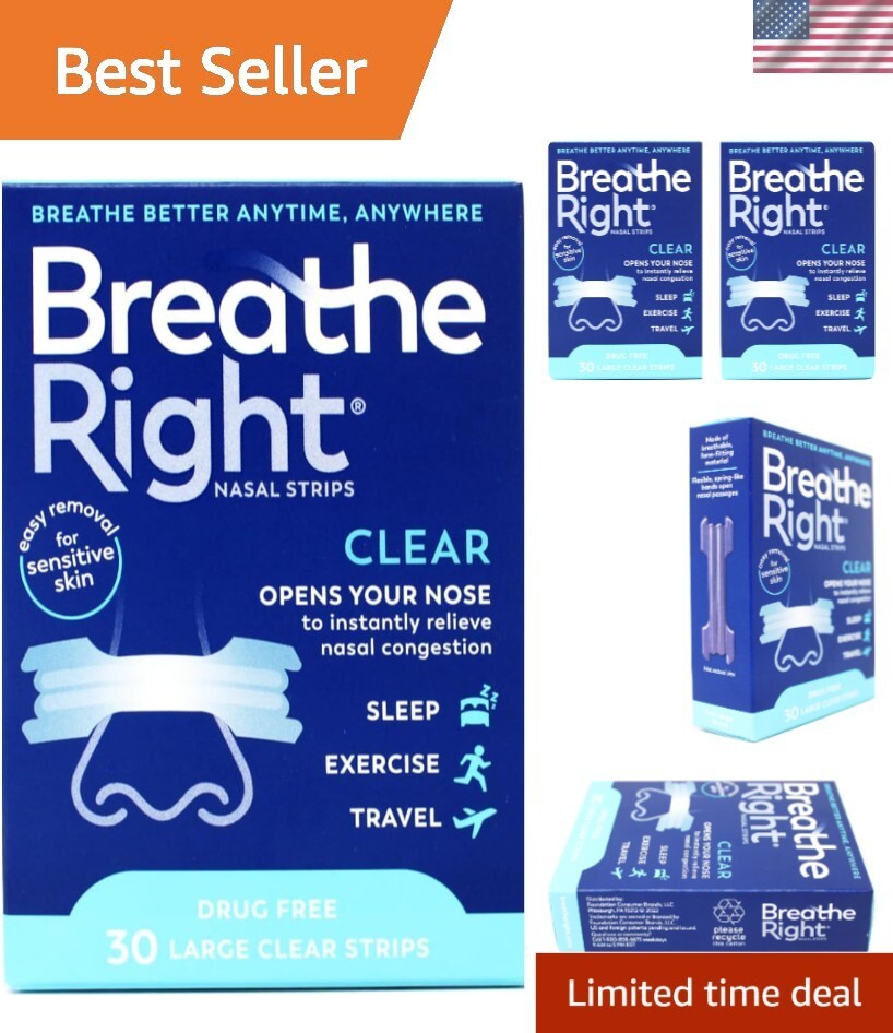Instant Relief Nasal Strips for Snoring - Clear, Drug-Free, 30 Count Value Pack