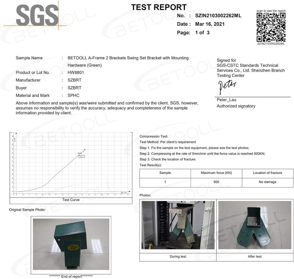 Constructed from heavy gauge steel with 100% welded joints, these brackets are a blend of strength and durability, ensuring a long-lasting investment in your family's outdoor fun. The elegant green finish enhances your swing set's aesthetic while providing corrosion resistance for of reliable use.
