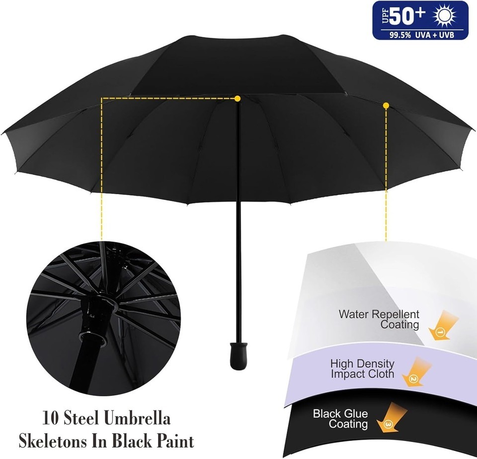Chic Black Beach Umbrella for UV Protection - Lightweight & Convenient