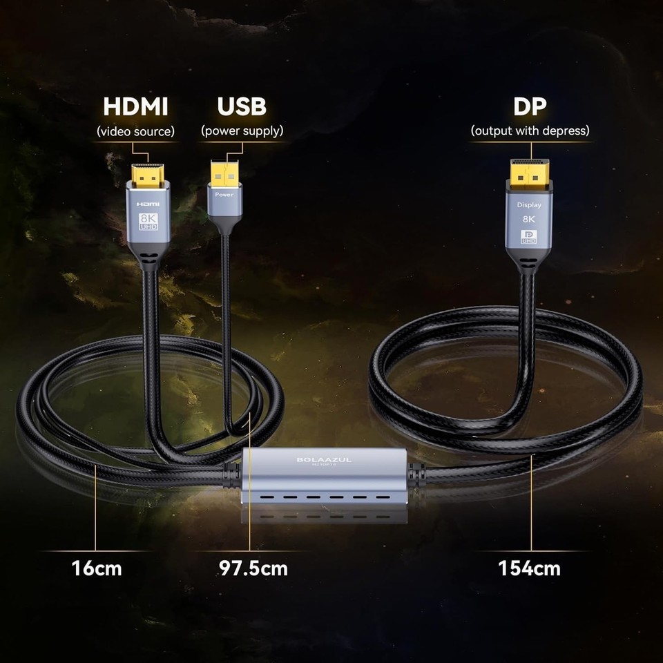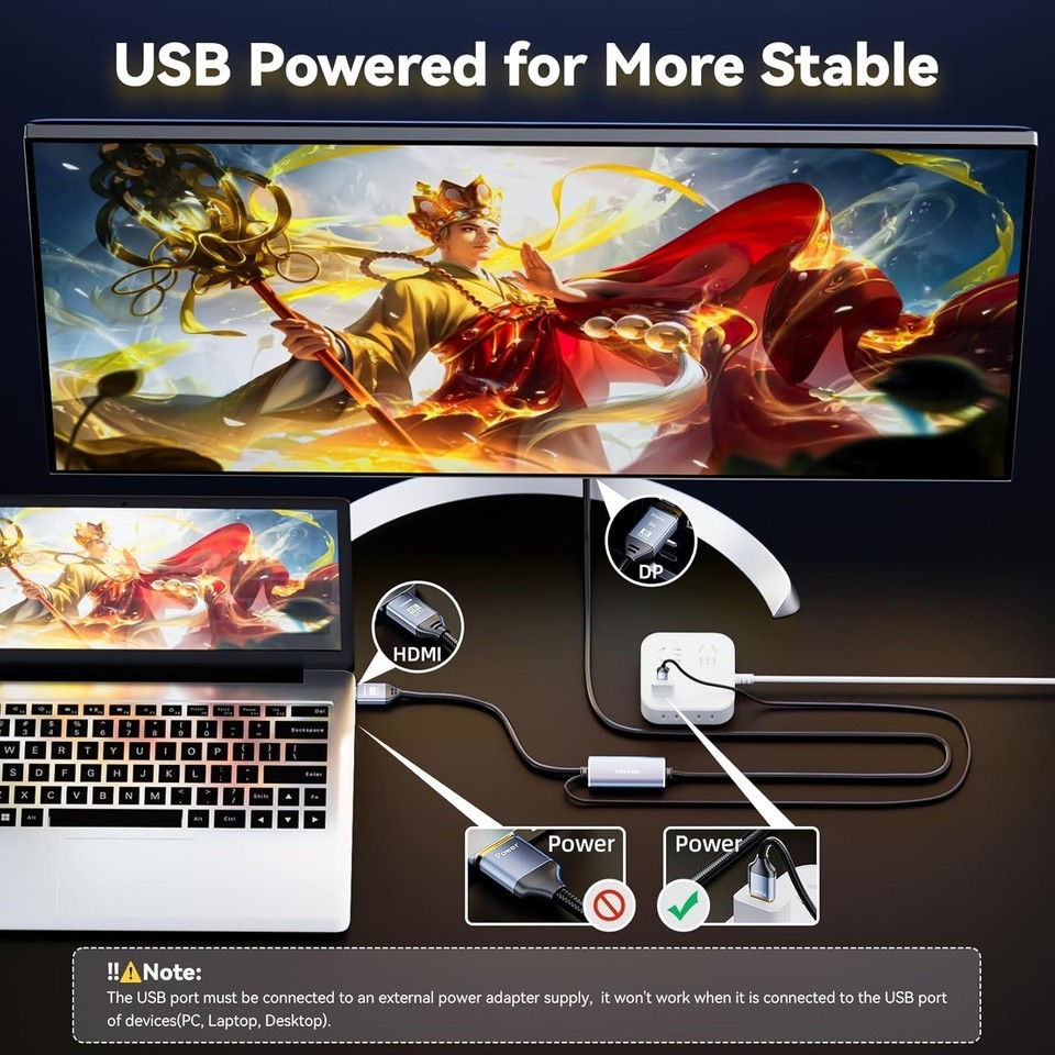 Unidirectional Transmission: Supports only HDMI source to DisplayPort display. Not compatible for DP to HDMI connections.