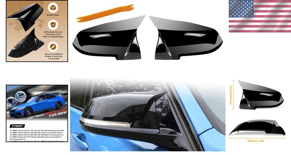 Glossy Black BMW Mirror Covers for F20 F22 F23 F30 F31 F32 F33 F36 M2 X1 E84
