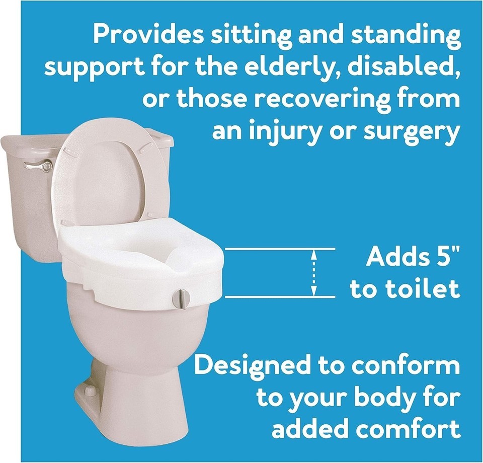 Height Enhancement: Adds 5 inches to toilet seat height for greater accessibility.