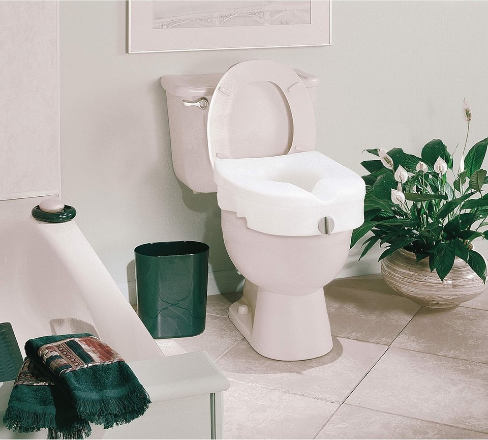 E-Z Lock Raised Toilet Seat: Securely fastens to both round and elongated toilet seats.