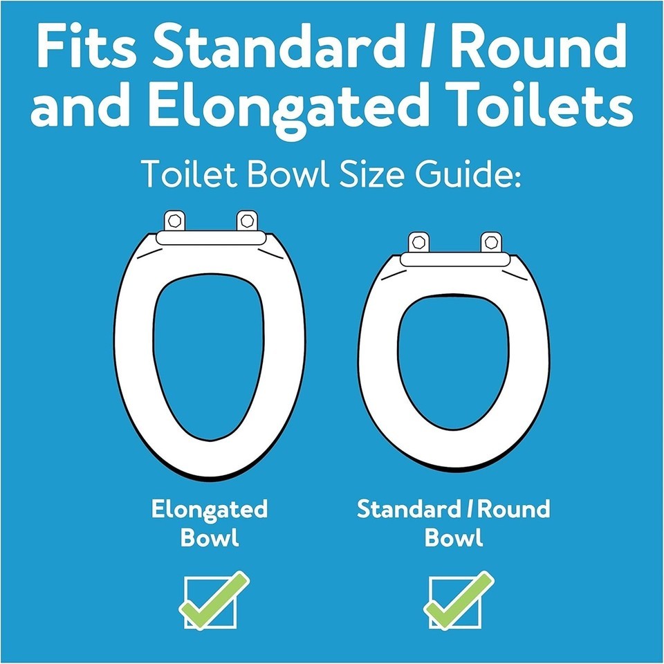 Universal Fit: Fits standard round and elongated toilets; middle opening measures 9 inches.